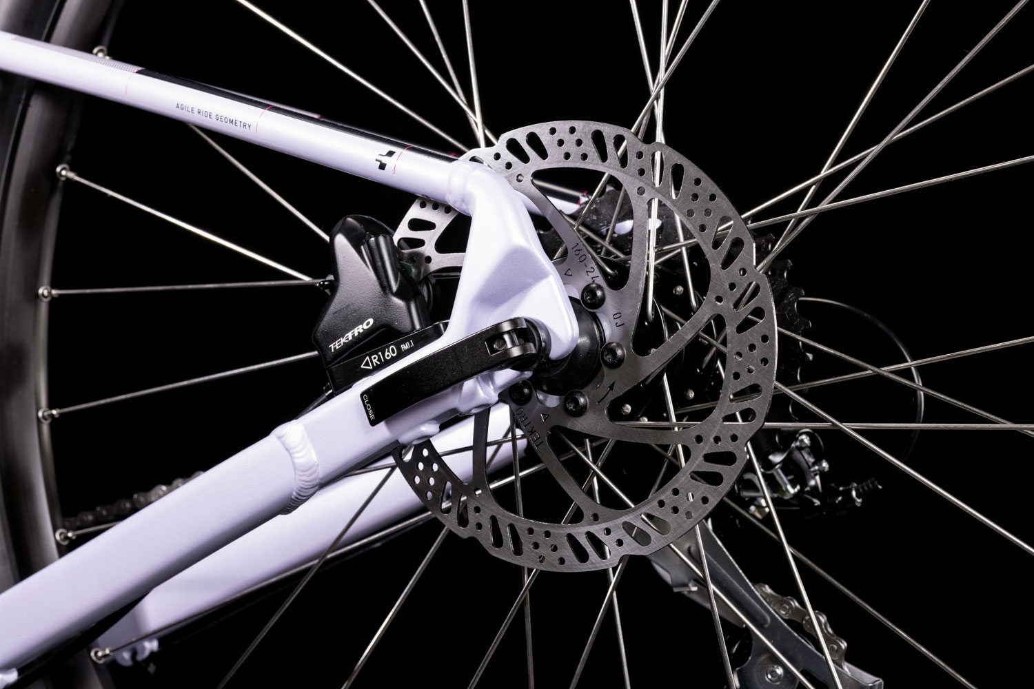Das Cube Access WS EAZ Damen-Hardtail mit hydraulischer Scheibenbremse und Acera Schaltwerk.
