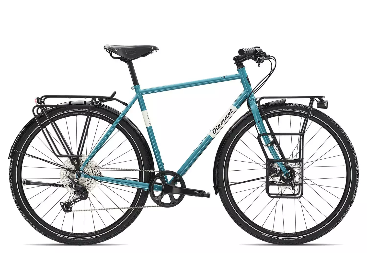 Das Diamant Villiger mit Deore Antrieb, zusätzlichem Frontgepäckträger, Stahlrahmen und Lederkomponenten.